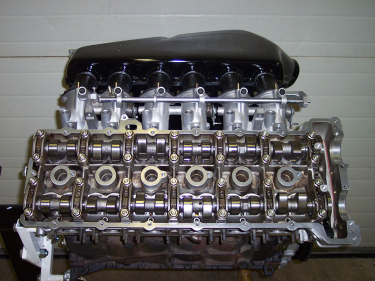 Nadat de klepgeleiders en cups zijn vervangen, de kleppen zijn ingeslepen, de cilinderkop gevlakt is en de uitlaatkanalen gepolijst zijn, worden de 2 cilinderkop-delen gemonteerd met Schrick nokkenassen (284 graden).